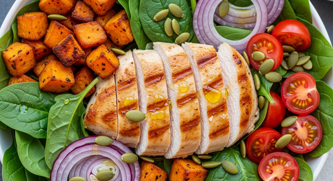 샐러드 고구마닭가슴살샐러드 삶은 고구마 큐브 + 닭가슴살 + 올리브유