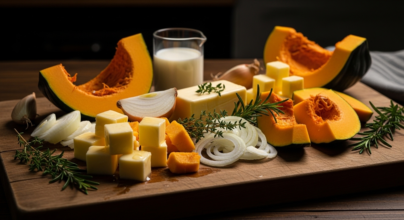 – 단호박 1/2통, 우유 1컵, 양파 1/4개, 버터 1작은술, 소금