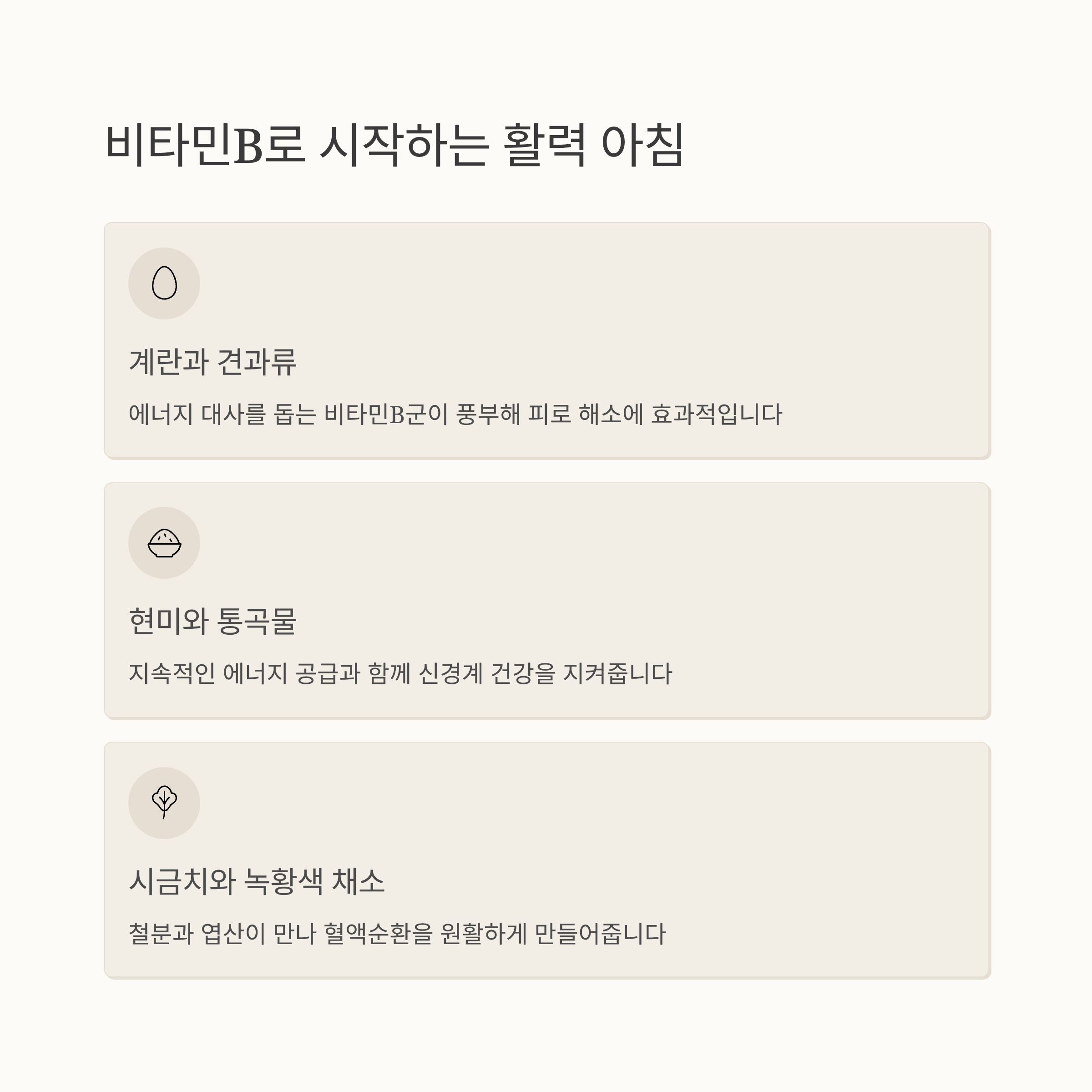 특히 비타민B12는 신경세포 보호와 피를 만드는 데 꼭 필요해서, 부족하면 쉽게 피로감을 느낄 수 있다고 해요.