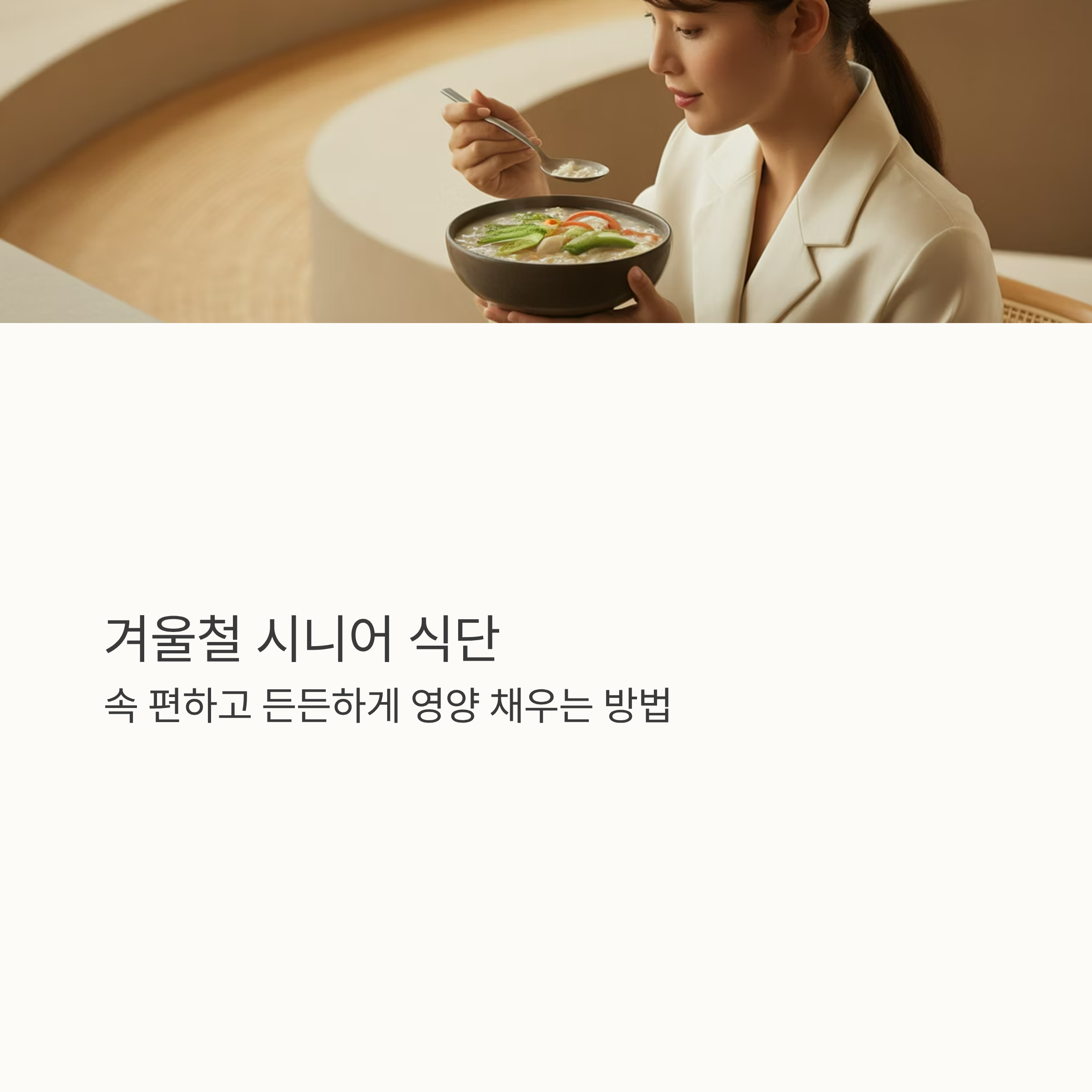 겨울철 시니어 건강은 식탁에서 시작됩니다. 부담 없이 삼키고, 편안하게 소화되며, 영양까지 꽉 채우는 식단으로 몸도 마음도 따뜻한 겨울을 보내세요.