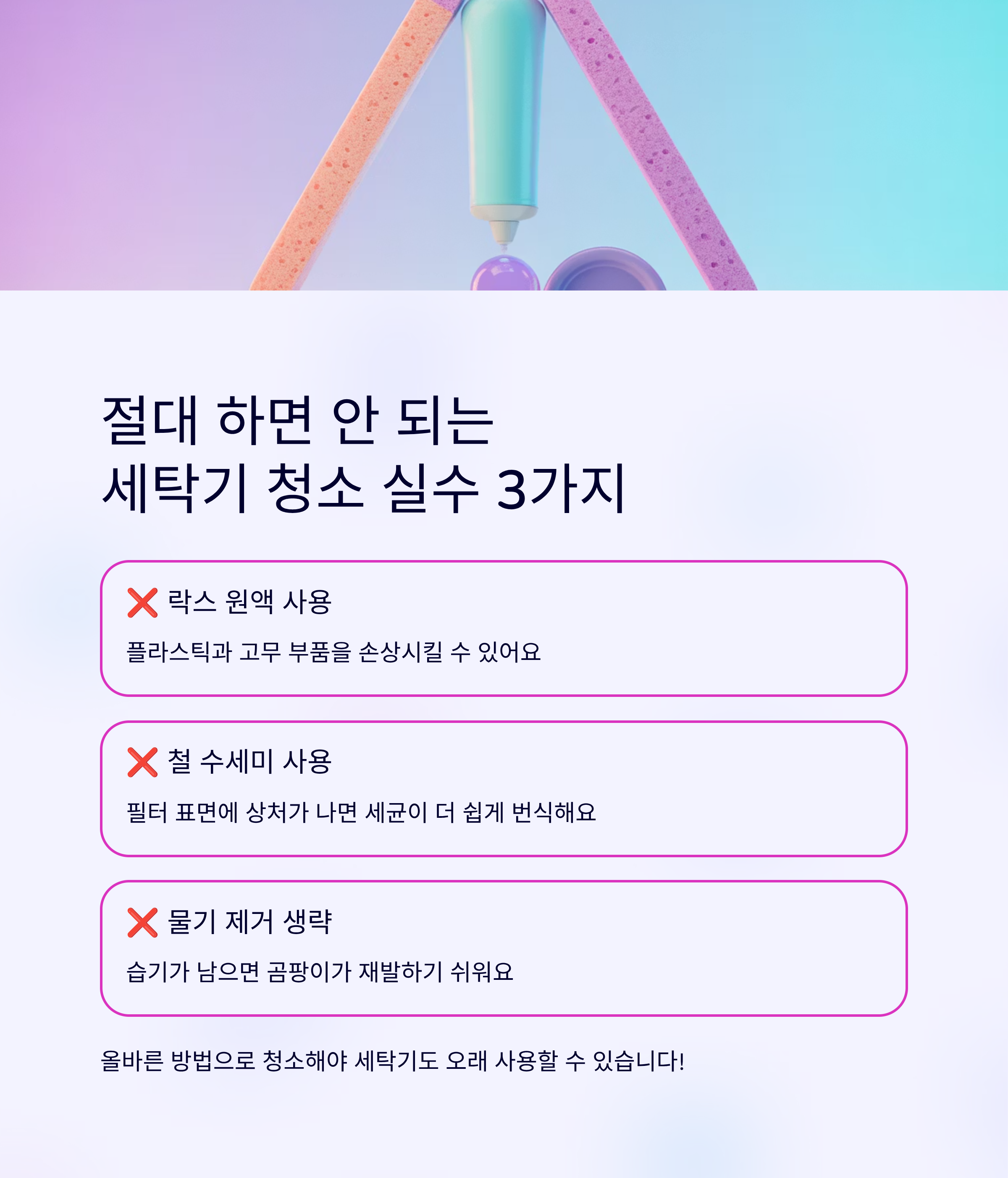 세탁기 청소 시 반드시 피해야 할 몇 가지 실수들이 있습니다.