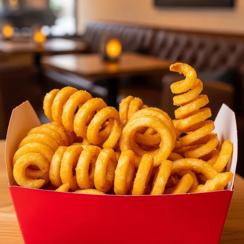 일반적인 직선 형태의 감자튀김과 달리 돌돌 말린 나선형 모양이 보는 재미를 더해주죠.