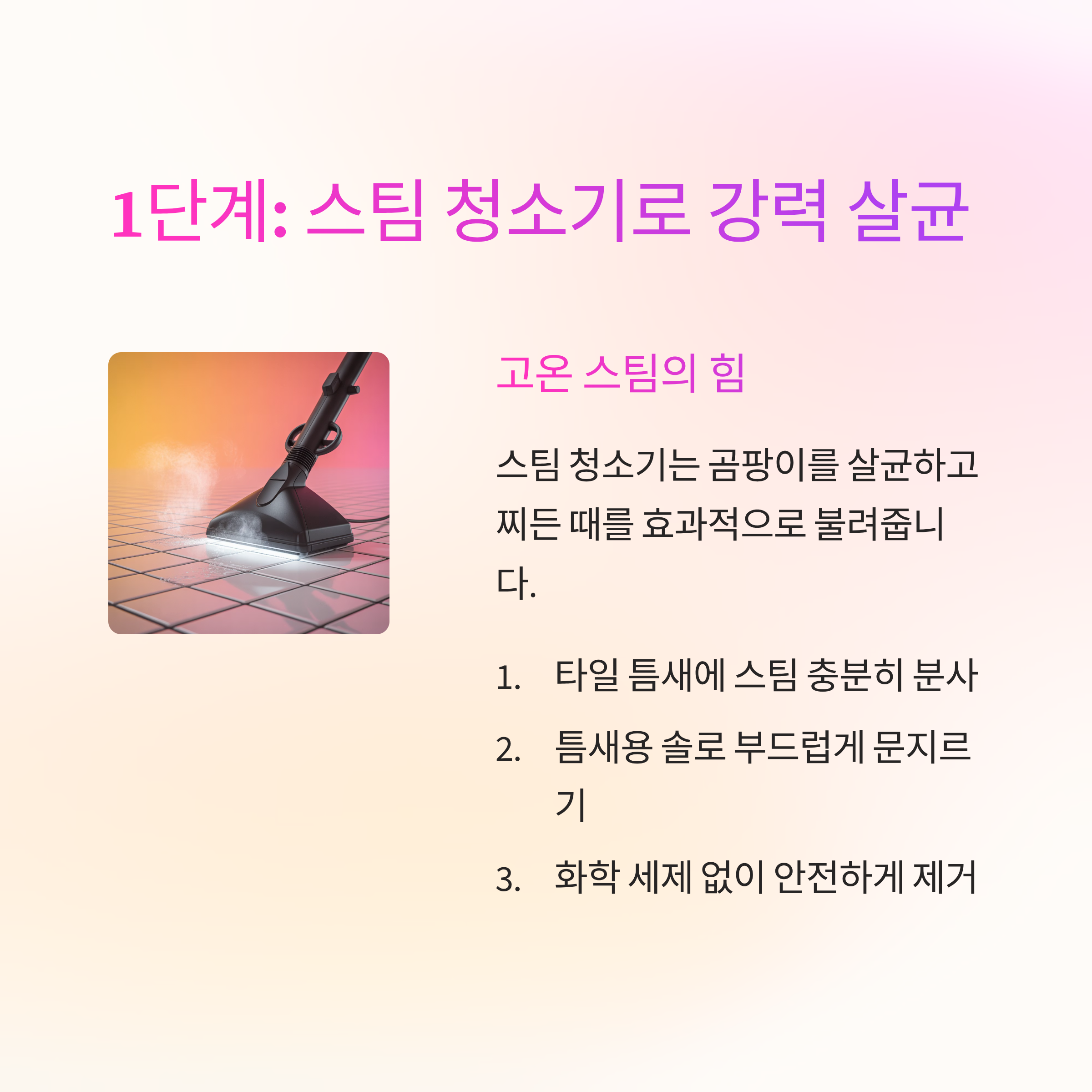좁고 깊은 타일 틈새는 일반 솔로는 닿기 어렵기 때문에 틈새 칫솔이나 작은 솔을 활용하는 것이 중요합니다.