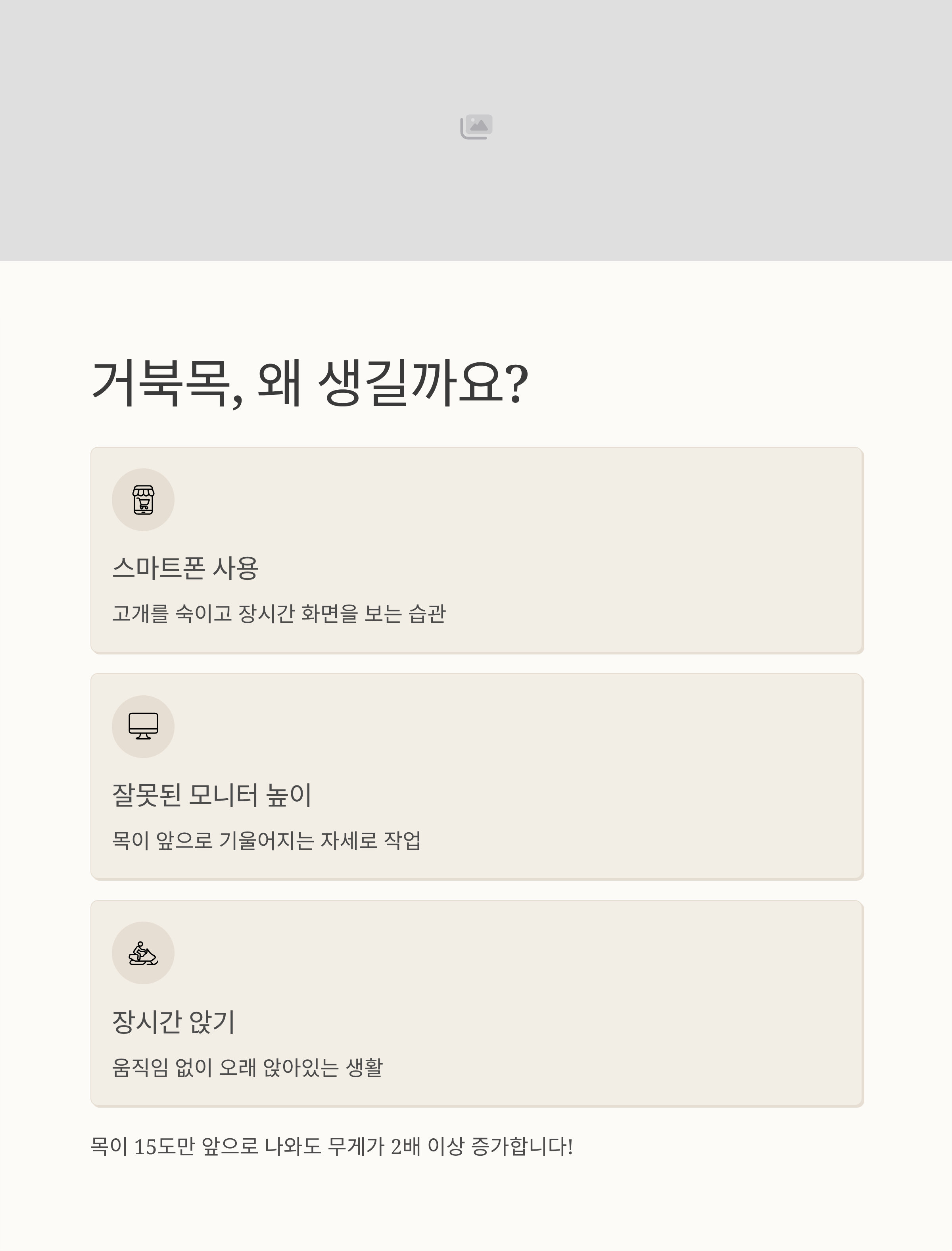 목 통증, 어깨 결림, 심지어 두통까지 유발하는 거북목, 더 이상 방치하지 마세요!