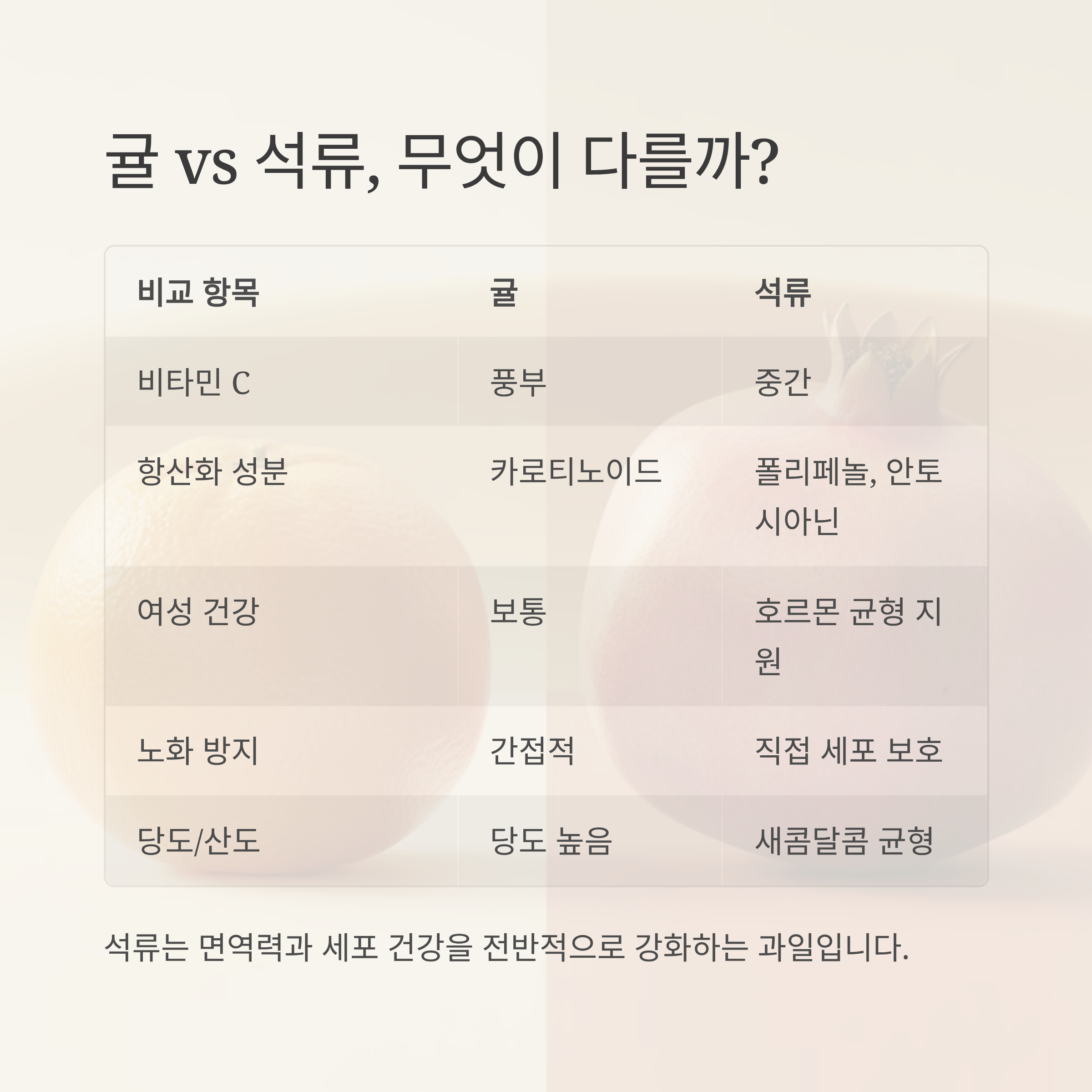 석류가 귤보다 더 주목받는 이유와, 실제 항산화 작용이 몸에 미치는 영향에 대해 정리해 드릴게요.