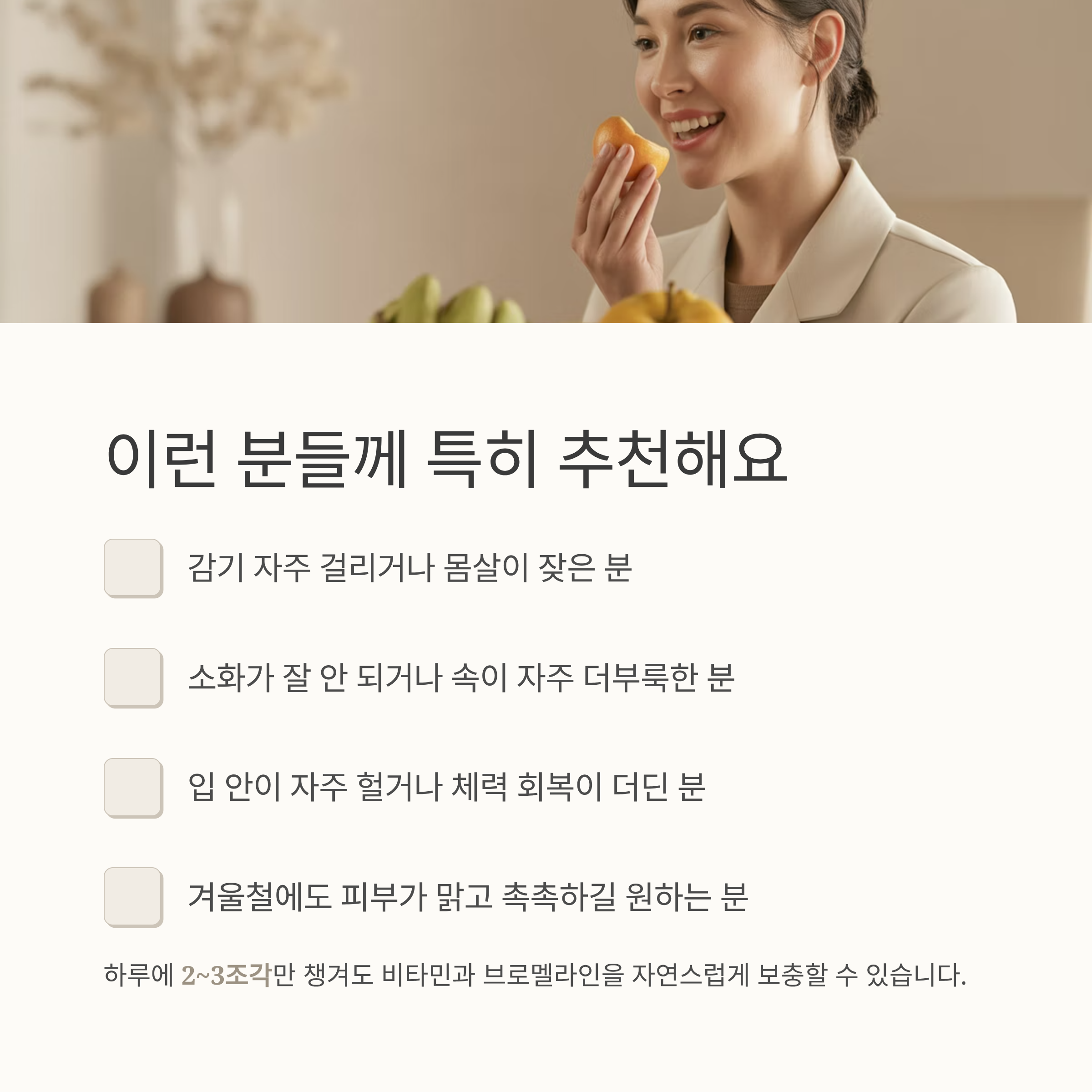 – 감기 예방, 항산화 효과, 피로 회복에 긍정적